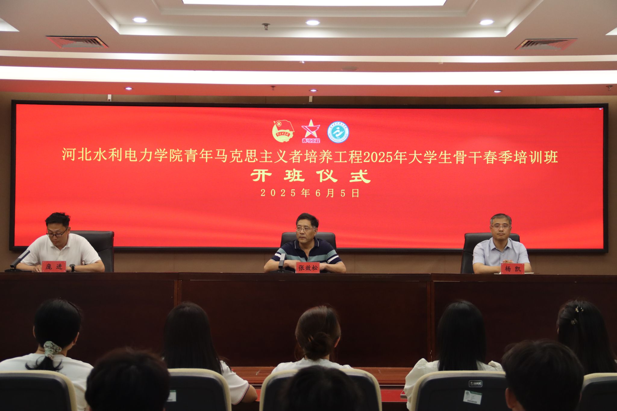 为深入学习贯彻习近平新时代中国特色社会主义思想和党的二十大精神,全面落实团中央关于深化“青年马克思主义者培养工程”的部署要求,着力培养“有理想、敢担当、能吃苦、肯奋斗”的新时代青年政治骨干,校团委于6月5日在弘文守正楼九楼报告厅举办2025年“青马工程”大学生骨干春季培训班开班仪式。党委书记张效松、副校长杨凯出席会议,会议由校团委书记庞进主持,各系团委书记及校、系青马学员代表参加了开班仪式。张效松在讲话中指出,...