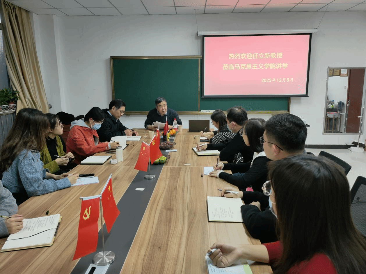 12月8日,石家庄铁道大学任立新教授做客我校马克思主义学院,以重温“总书记在学校思想政治理论课教师座谈会上的讲话,努力提升立德树人本领”为题,为马院青年教师们带来了一堂生动的思政课。校党委书记张效松出席讲座,讲座由马克思主义学院院长贾启红主持。任立新教授主要围绕习近平总书记在思想政治理论课教师座谈会上的讲话中谈及的四个方面展开:办好思想政治理论课意义重大;办好思想政治理论课关键在教师;推动思想政治理论课改革创新,...