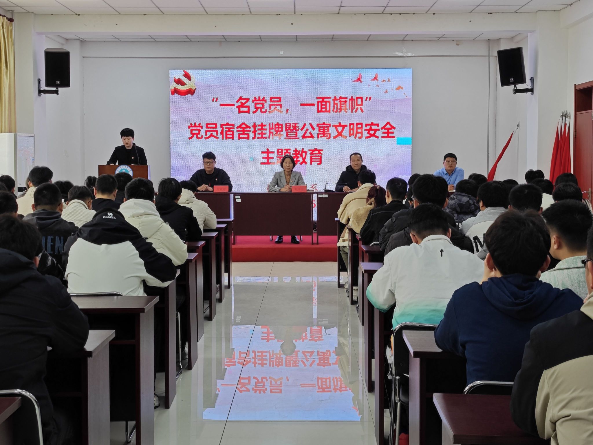 为进一步推动机械工程系宿舍文明创建工作,落实一站式社区管理服务要求,加强宿舍安全卫生教育,营造积极向上、安全文明的育人环境,3月25日,机械工程系在启智楼B201召开“一名党员,一面旗帜”党员宿舍挂牌仪式暨一站式社区公寓文明安全主题教育活动,机械工程系党总支书记荆秀萍,党总支副书记杨学智、团委书记贺欢呼及部分辅导员老师出席本次会议,贺欢呼主持活动。首先,学生党员代表戚龙分享了关于保持宿舍安全卫生的经验和做法。...