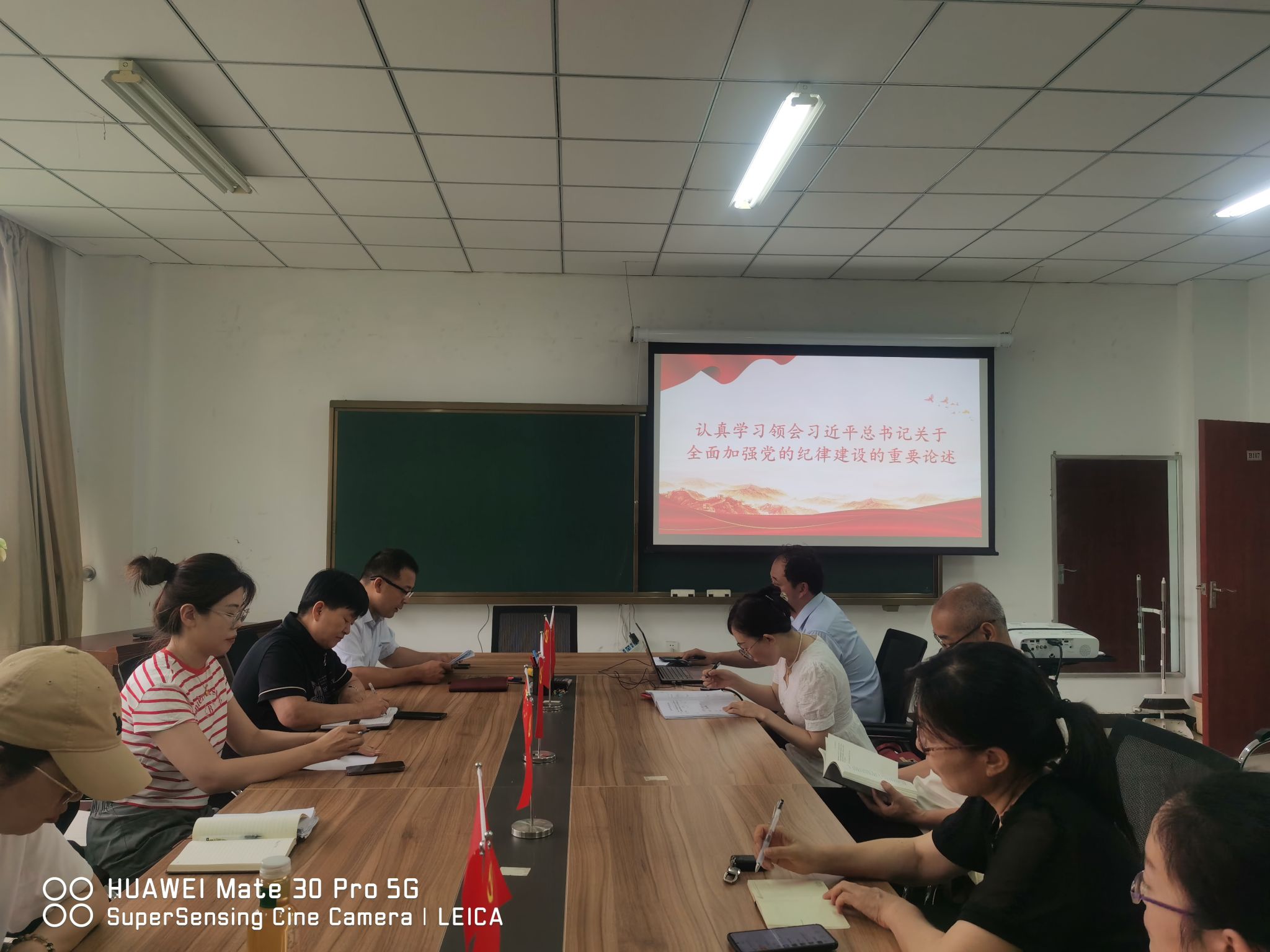 6月14日,直属单位一支部召开会议,专题学习习近平总书记关于全面加强党的纪律建设的重要论述,推进党纪学习教育走深走实。会议由支部书记贾启红同志主持,全体党员教师参加会议。会上,组织委员、纪检委员崔政同志领学了习近平总书记关于全面加强党的纪律建设的重要论述,各位参会教师围绕这一重要论述,结合教学与科研实际,先后进行了交流发言。大家纷纷表示,在今后的工作中,将会更深刻地将党规党纪与自身工作紧密结合,将日常的言行举止标尺记于心、...