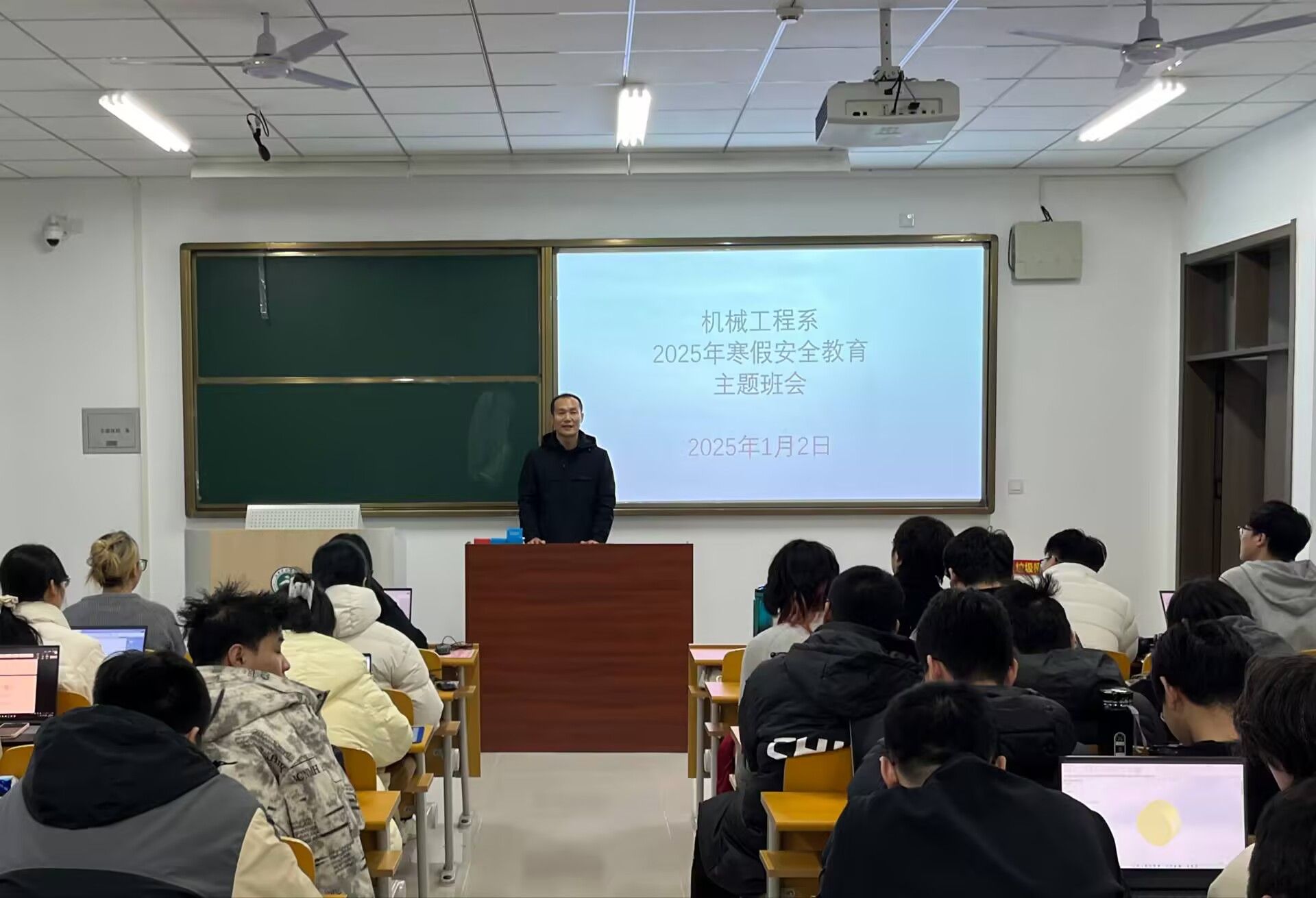 为切实增强学生的安全防范意识和避险能力,保障学生寒假前后安全,近日,机械工程系各班相继召开了《假前安全教育》主题班会,对全系学生进行安全教育。各位辅导员根据本班实际情况进行有针对性的教育,从校园安全、交通安全、假期安全三大方面入手,对学生进行了一次深刻的安全教育。针对假期宿舍安全,强调离校时关水、关电、关门窗,贵重物品带回家;返乡途中及假期外出要注意交通安全,增强安全意识,加强自身防护,防止意外事件发生;...
