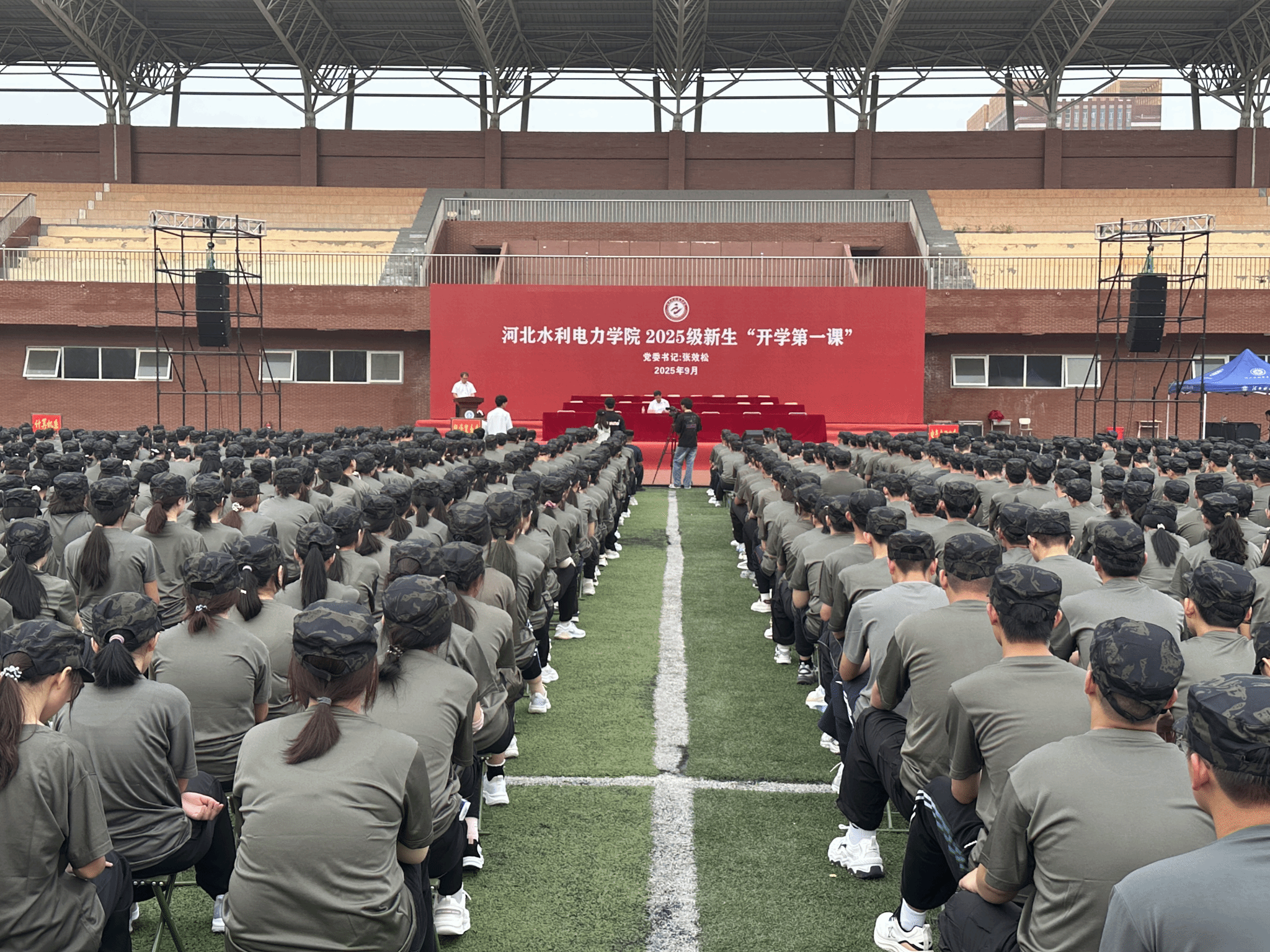 秋高气爽迎新人,硕果盈枝启征程。9月8日上午,水院绿茵场上朝气蓬勃,党委书记张效松以《厚植家国情怀 勇于挺膺担当 ‌在信仰与传承中谱写青春华章》为题,为2025级全体新生讲授“开学第一课”。