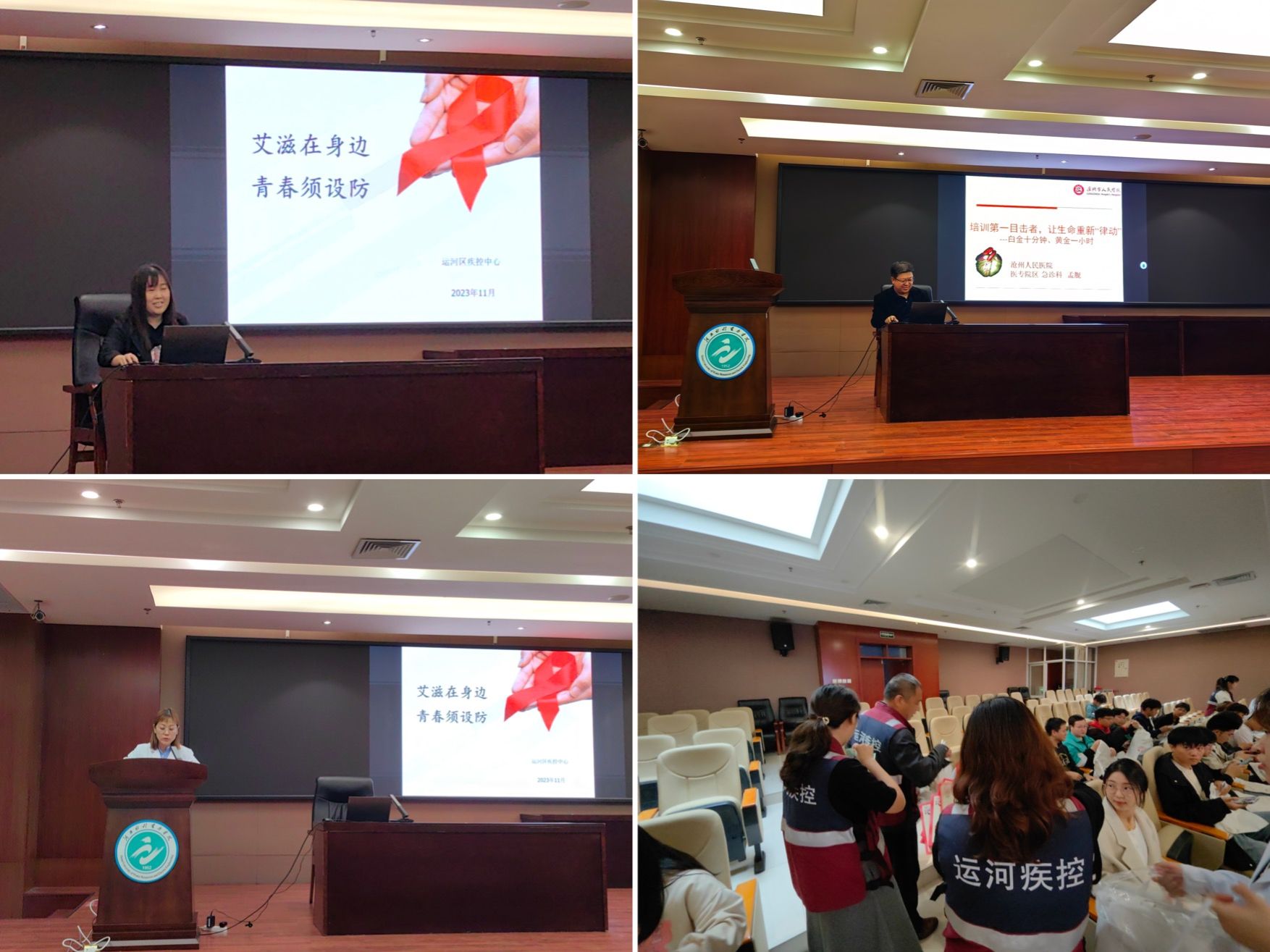 11月2日下午,我校卫生健康科联合运河区疾控中心、沧州市人民医院专家团队在弘文守正楼9楼报告厅共同举办卫生健康宣传教育讲座,本次讲座的主要内容为艾滋病防控知识、用血献血的相关知识、心肺复苏、海姆雷克窒息急救法及实地操作。