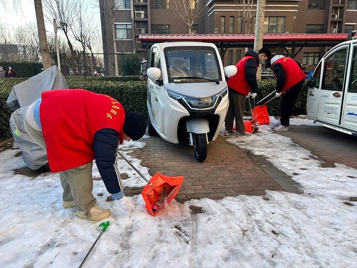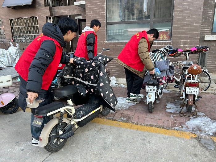 在活动过程中,志愿者们对小区的休闲场所、绿化带中的垃圾杂物进行了彻底清理,对楼道旁张贴的小广告进行了清除,将乱停放的电动车、自行车进行了规整摆放,并引导社区居民有序停车。即使天气寒冷,大家的热情依旧高涨,工作细致认真。在大家的共同努力下,社区环境焕然一新。志愿者们还在老师的带领下向社区居民分发宣传手册,积极宣传全国文明城市创建知识,共同营造“全民行动,共创文明城市”的浓厚氛围。