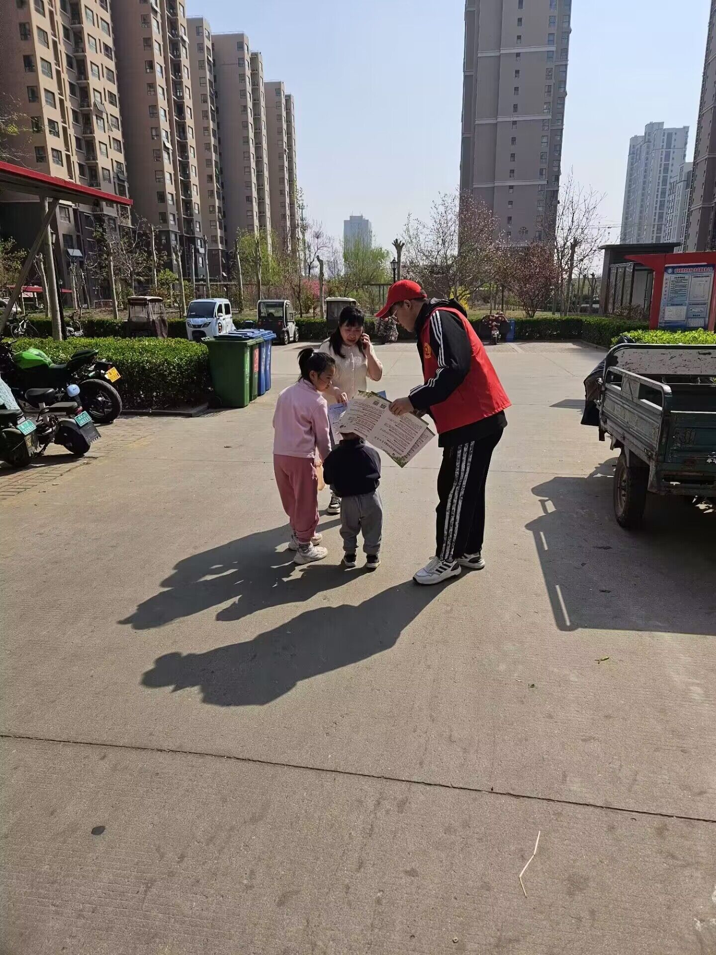 活动中,同学们穿上红马甲,走进社区,撸起袖子,拿起扫把、夹子、簸箕等卫生工具,打扫路面垃圾和绿化带中的杂草、果皮、塑料袋、烟头等杂物。大家发扬奉献精神,不怕苦、不怕累、不嫌脏,将每一个卫生死角都清理得干干净净。同学们共同参与,井然有序,一起打造更加美好的社区环境,呈现出一道靓丽的风景线。此外,志愿者们向居民分发《沧州市创建全国文明城市知识手册》,讲解创建全国文明城市的意义,倡导践行《沧州市民公约》,引导居民遵守社区公共文明行为规范,共同维护社区公共环境。