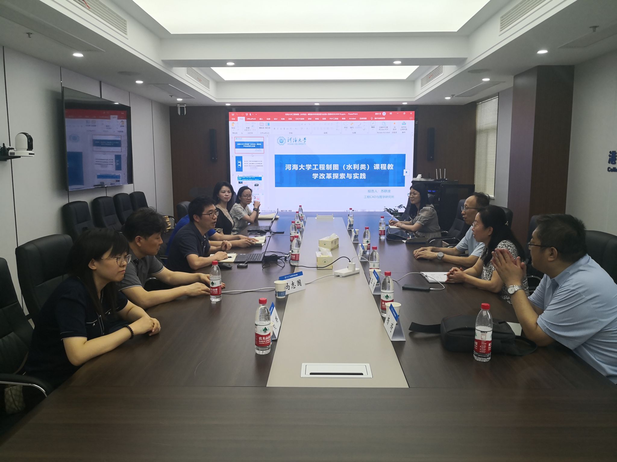 河海大学工程CAD与图学研究所所长苏静波教授带领全所教师热情接待我校一行。在交流会上,苏静波介绍了河海大学工程制图课程的教材建设、线上课程建设、数字化教材建设、教学改革研究情况;工程制图教研室主任李昂介绍了工程制图类课程大纲修订情况;研究所钟春欣老师介绍了实践教学(图学竞赛)开展情况及所获成果。会谈结束后,我校一行参观了河海大学江宁校区制图专用教室、教学模型室、智慧教室以及严恺馆港航综合展示平台。