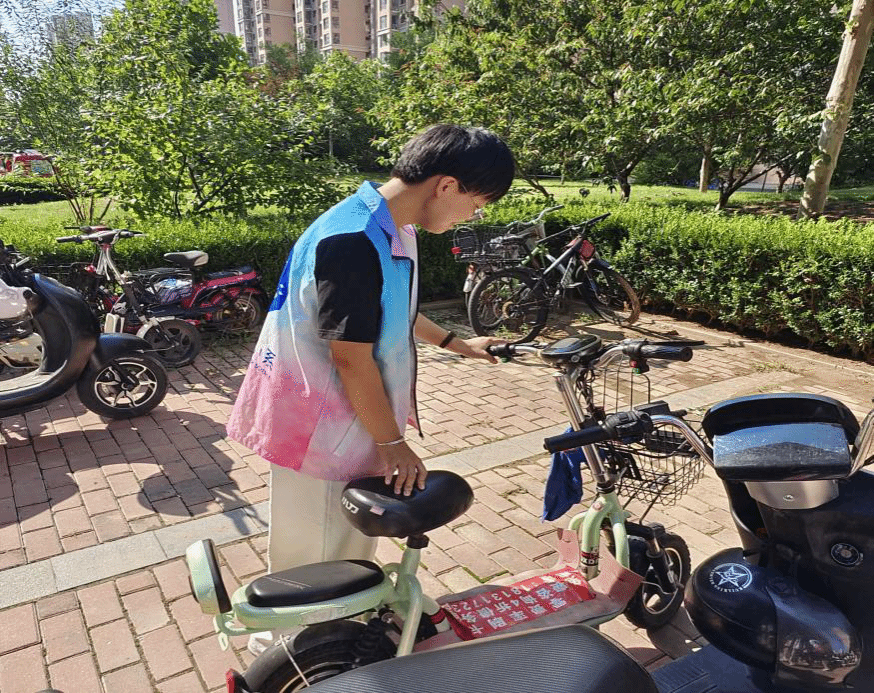 针对小区内堵塞小区道路、占用消防通道以及停放不规范、不整齐的非机动车,志愿者们耐心地将其摆放在指定区域。用实际行动解决社区内的“乱停乱放”现象,同时引导居民养成良好的出行习惯,共同维护社区的公共秩序。