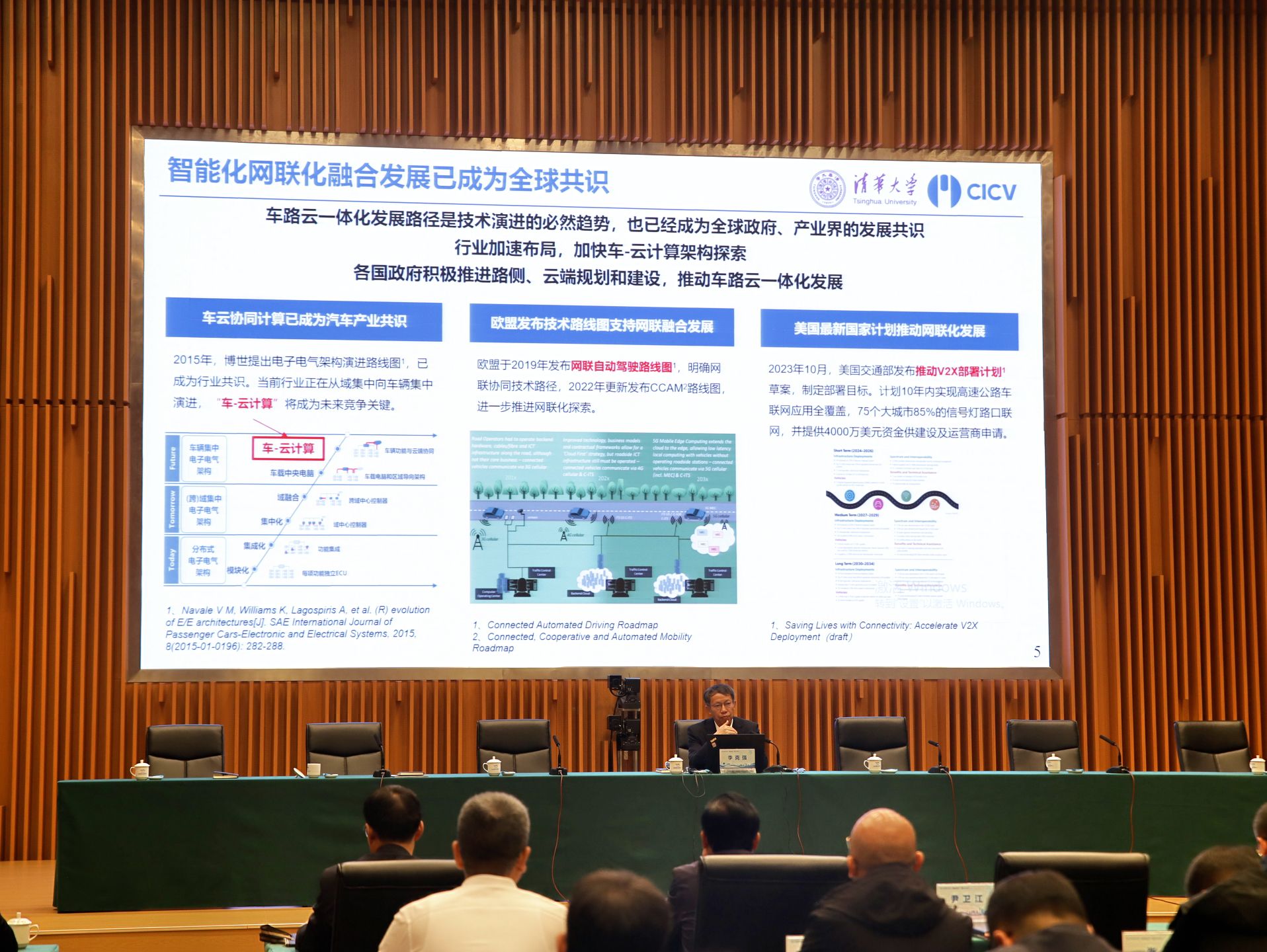 报告伊始,李院士对车路云的发展现状进行了深入剖析,并针对当前存在的理解误区进行了详尽的解答。他明确指出,车路云一体化作为未来智能交通领域的关键发展方向,将引领行业迈向新的高度。在讲解车路云一体化的架构特点时,李院士着重强调了五个核心要点:聚焦商业闭环、统一系统架构、突出云控应用、发挥网联优势以及推动行业标准先行。这五点将成为推动车路云一体化发展的关键驱动力。