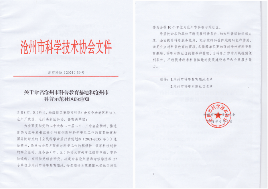 今后,我校将以此次沧州市科普教育基地获批为契机,不断完善科普条件,加大科普活动组织力度,全面提升科普服务能力,充分发挥科普阵地的功能和作用,满足公众对科普教育的需求。