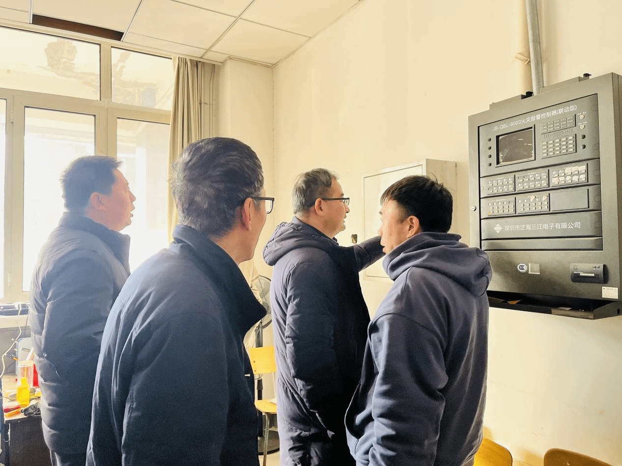 综合组先后深入图书馆、大学生活动中心、超市、综合服务楼、各教学楼和学生公寓以及消防水箱间、消防控制室、图书馆配电室等重点部位进行了消防安全隐患检查。重点检查了火灾自动报警系统、自动喷淋灭火系统、防排烟系统、防火卷帘、应急照明装置、疏散指示标志、消火栓、灭火器、气体灭火系统等消防设施,经检查消防设备设施均正常运行。综合组在2号学生公寓摁响了消防手动报警按钮模拟火灾发生,消防控制室值班人员迅速赶到报警现场进行了处置。